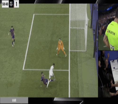 比赛一开始,看马的攻击群就像“打了鸡血”一样,志在复仇。第2分钟,威尼修斯杀入禁区造点,但VAR迅速介入,判定亚马尔抢断干净,伯纳乌嘘声四起!第12分钟,居莱尔灵光乍现挑传,姆巴佩凌空抽射破门,可惜因毫米级越位被判无效,伯纳乌空欢喜一场。随后银河战舰的攻势更加狂爆,一浪高过一浪威胁巴萨的后防。