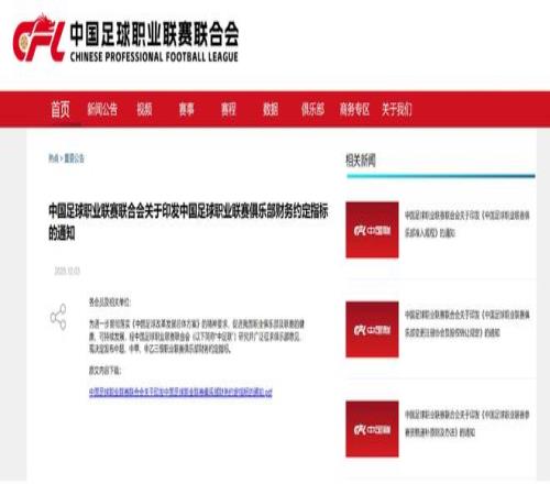 北京时间2025年12月3日消息,今天下午,打开中足联的官网,可以看到多份文件的发布,其中比较引人关注的就是中国足球各级俱乐部,在每一个自然年的投入限额规定,以及球员的年薪限额规定。——不再是曾经的“金元足球”时代,不再是“烧钱、砸钱”的足球模式,回归理性的中国足球,这样的举动是非常好的!