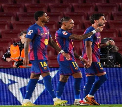 第85分钟埃兰多打空门得手,但犯规在先被判进球无效,1分钟之后,巴塞罗那就终结了胜负的悬念,孔德右路下底传中,皮球被防守球员挡了一下后,落到了拉菲尼亚的面前,后者笑纳大礼,上演梅开二度的好戏,将比分定格为了2-0。