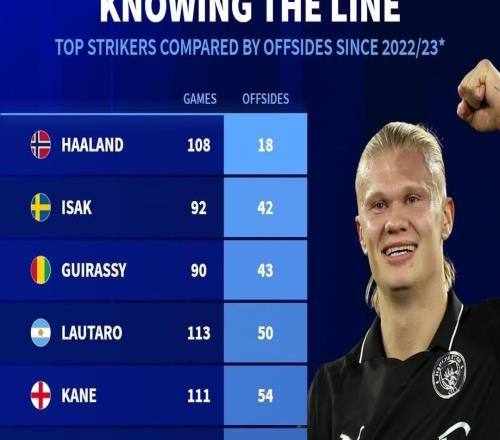 2223赛季以来顶级前锋越位数:哈兰德仅18次,C罗143次 -